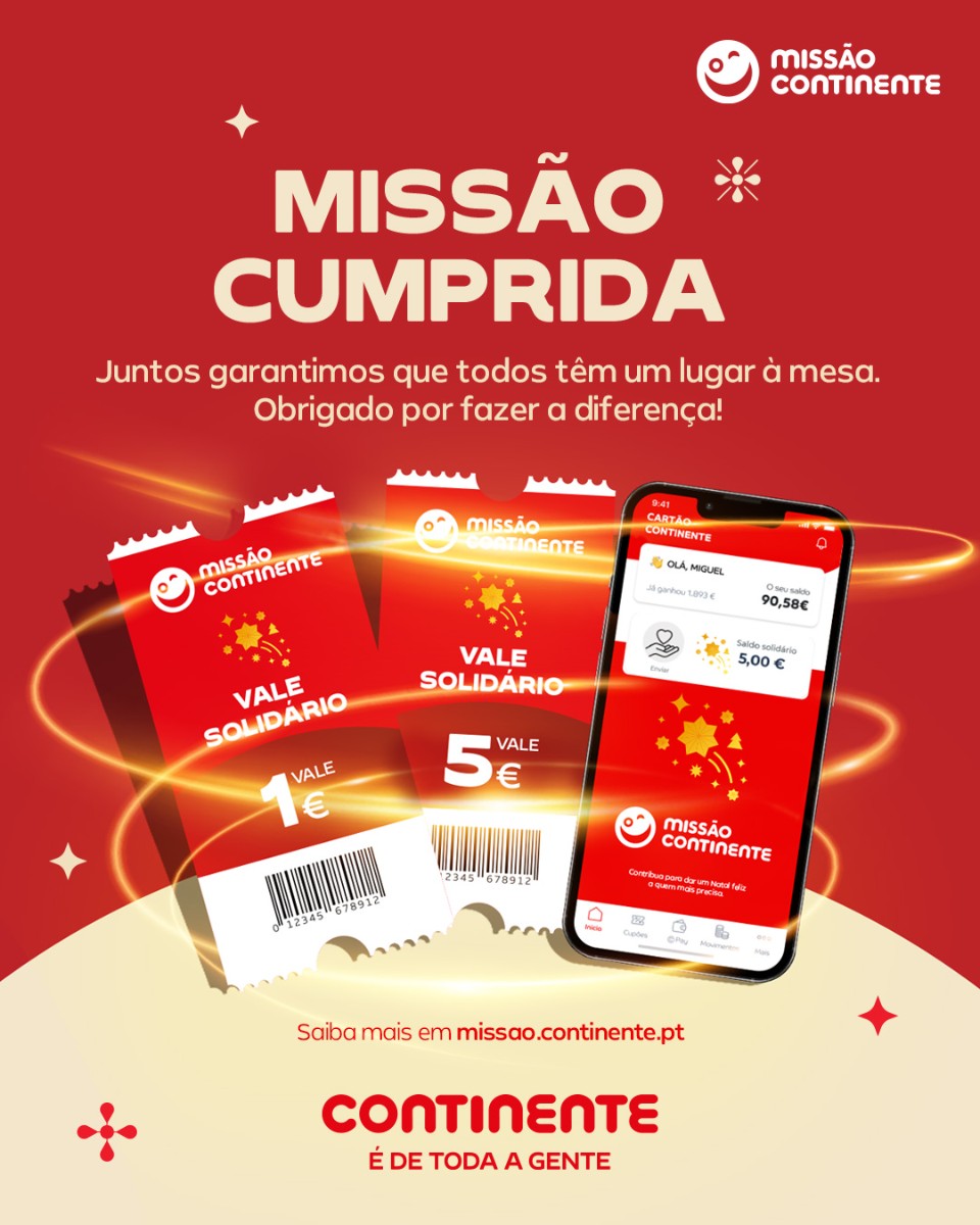 Obrigada a todos os que, mais um ano, se juntaram à Missão Continente e tornaram esta campanha solidária possível. O vosso apoio tem um impacto real e ajuda-nos a continuar a nossa Missão. Juntos, fazemos a diferença. 💙