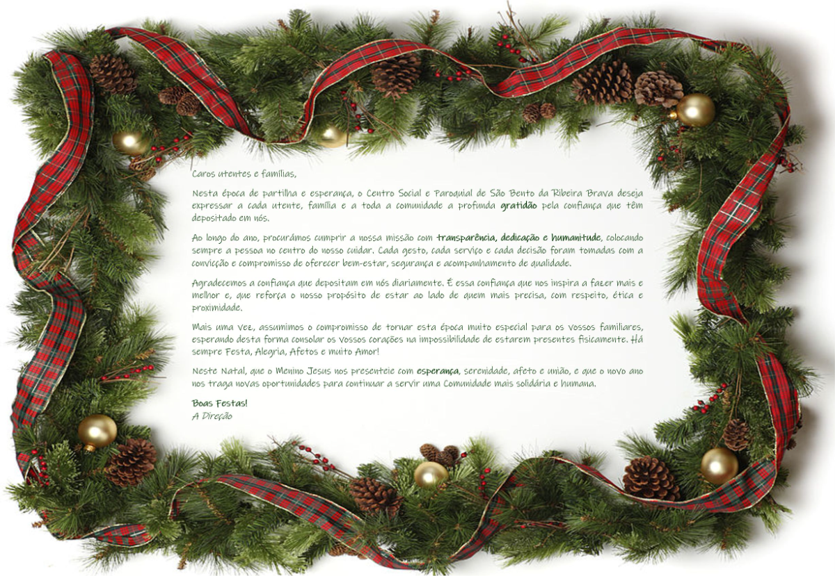 As valências do Centro Social e Paroquial de S. Bento estão decorados a preceito, de modo a que os residentes, colaboradores, famílias e visitantes tenham o espírito da época Natalícia bem presente.