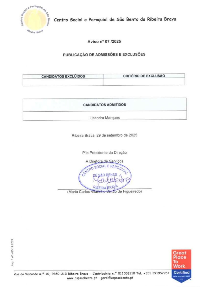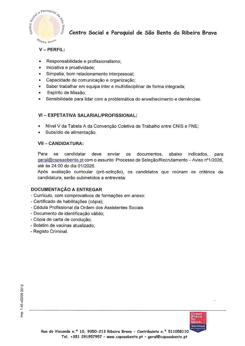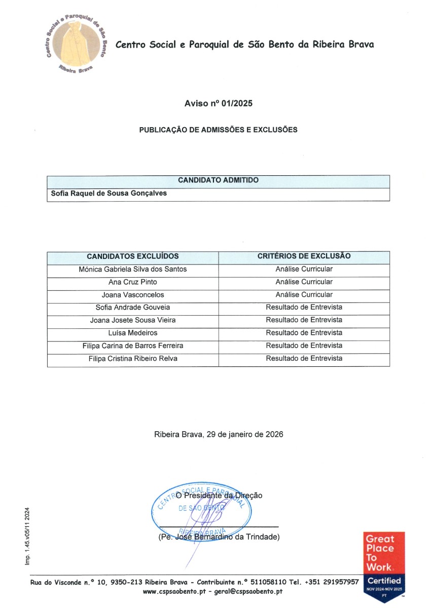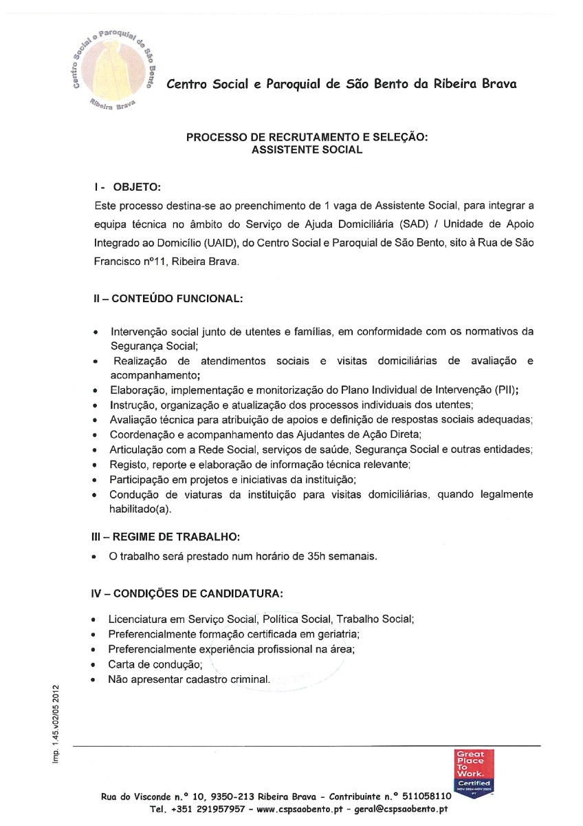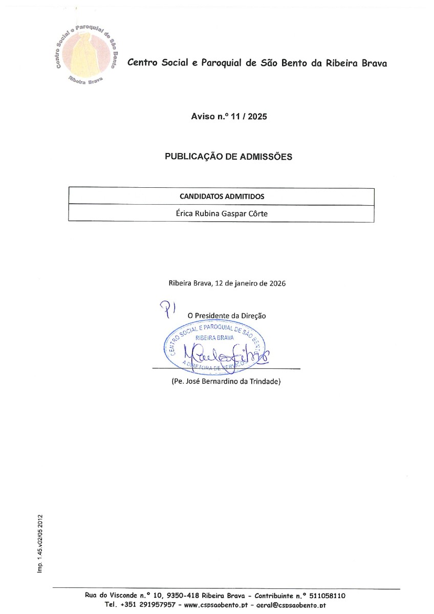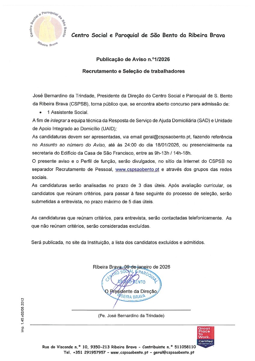 CENTRO SOCIAL E PAROQUIAL DE SÃO BENTO DA RIBEIRA BRAVA